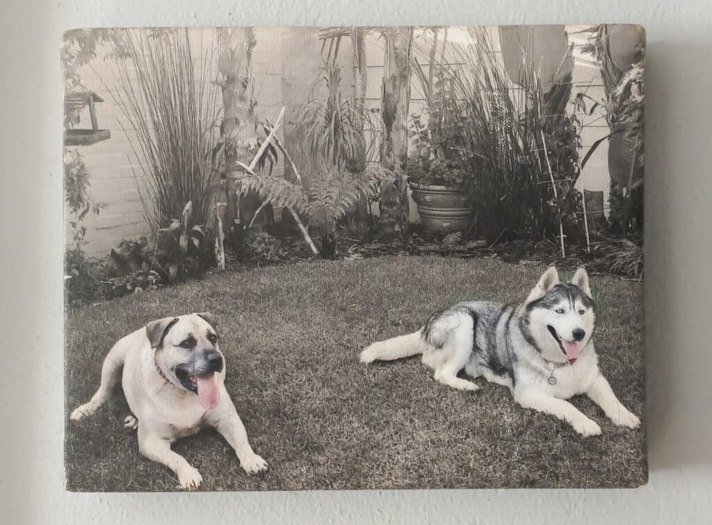 Don’t avoid your pet’s memory by hiding their pictures. Instead, place one of your favorite photographs of them on display. You can add a photo into a gorgeous frame, print the image onto a canvas, or have a custom portrait created to hang on your wall. There are several artists or small businesses that produce realistic artwork of your pet on a canvas or a wood block. You can add their name and a custom background, making for a treasured piece.